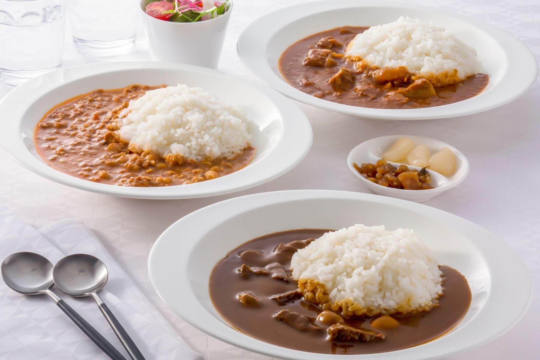 -クラムチャウダー、コーンスープ、ビーフカレー、チキンキーマカレー、ハッシュドビーフ 各1食