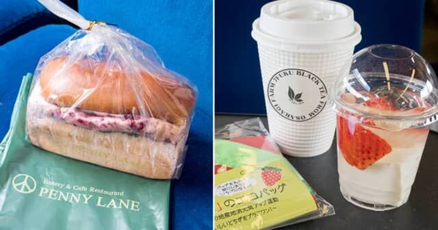 パティスリー ラ フォセットの『いちご杏仁豆腐』は果肉をたっぷりトッピング。おさらぎファームの『板荷茶(和紅茶)』は口の中をさっぱりリセットしてくれました。さらにお土産として、ベーカリーの有名店ペニーレインの、ブルーベリージャムをたっぷり練り込んだ『ブルーベリーパン』が一斤用意される贅沢さには感動です。