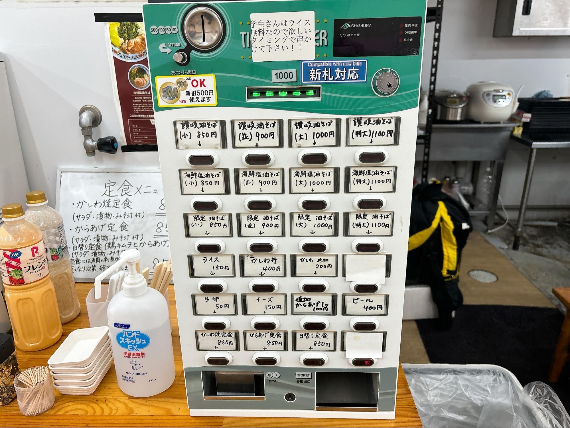 入店するとまず券売機があり、食券を買って店員さんに渡してから席に座るシステムでした。