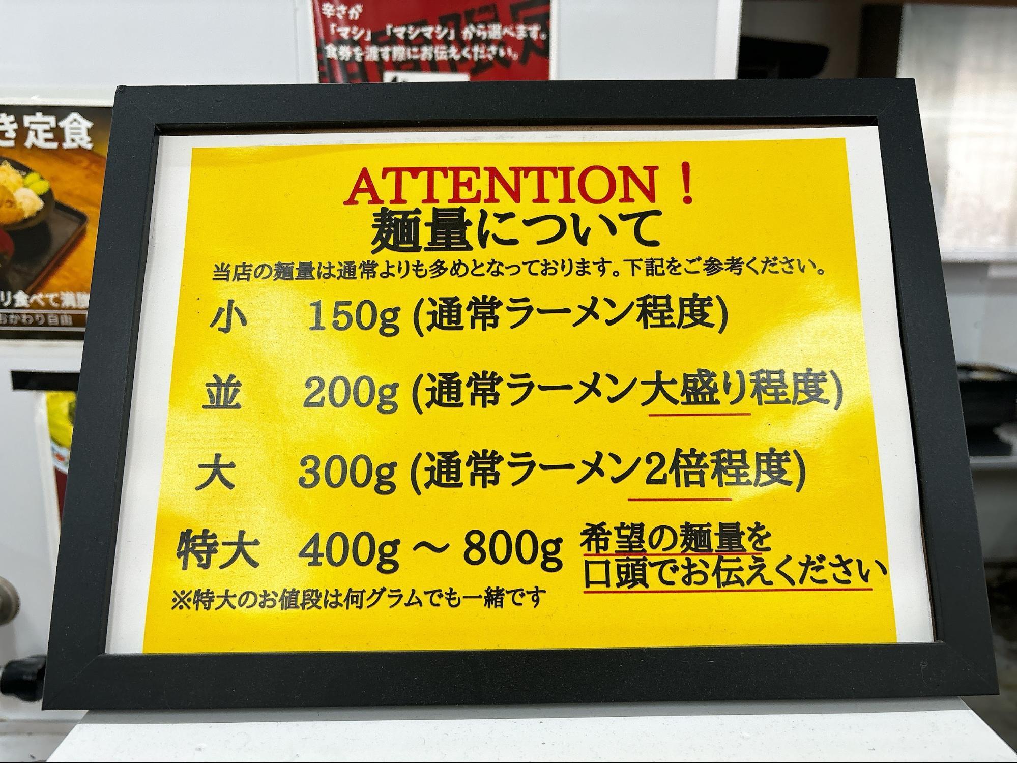 小150g、並200g、大300g、特大は400〜800gまで選べます。