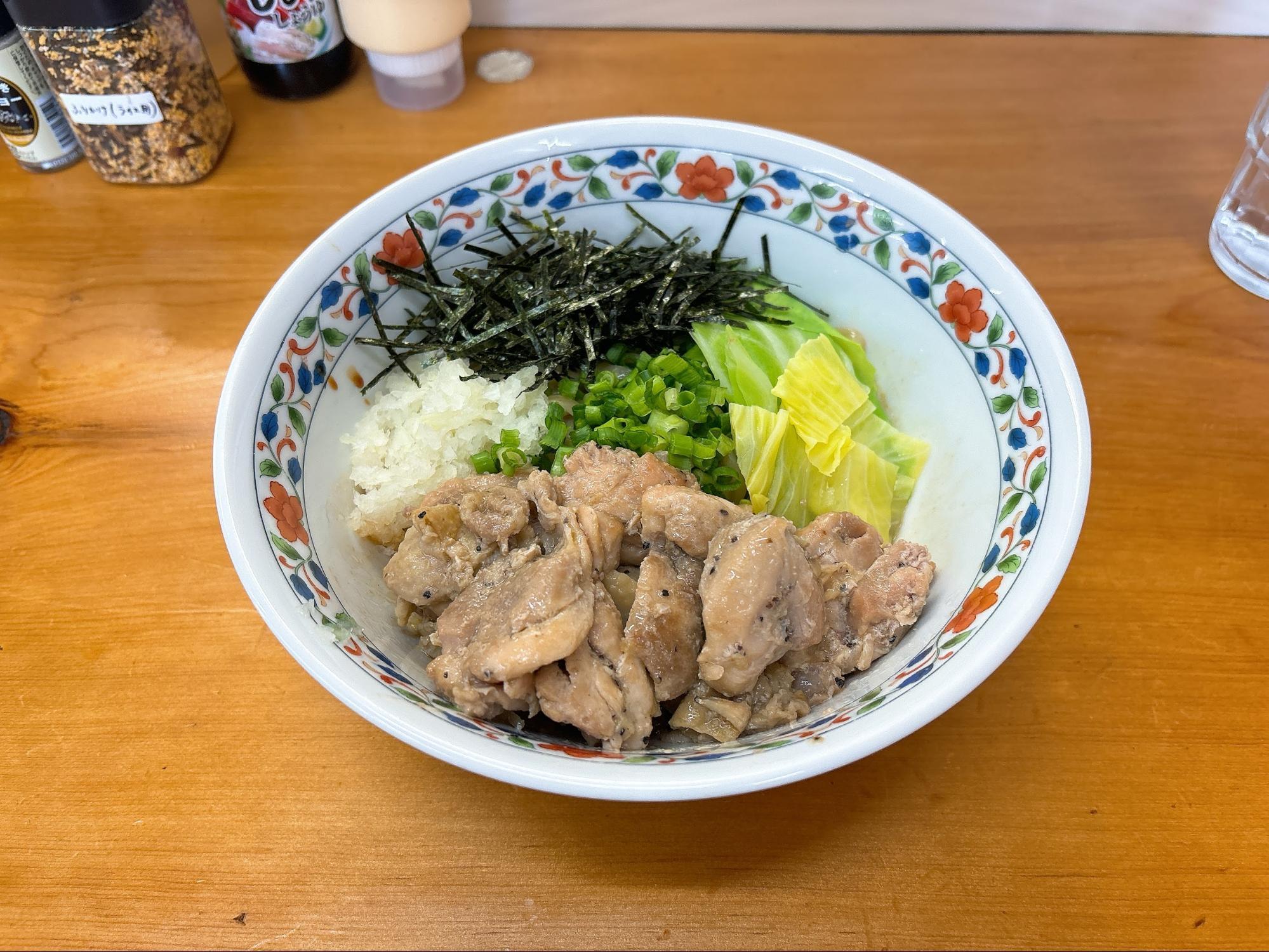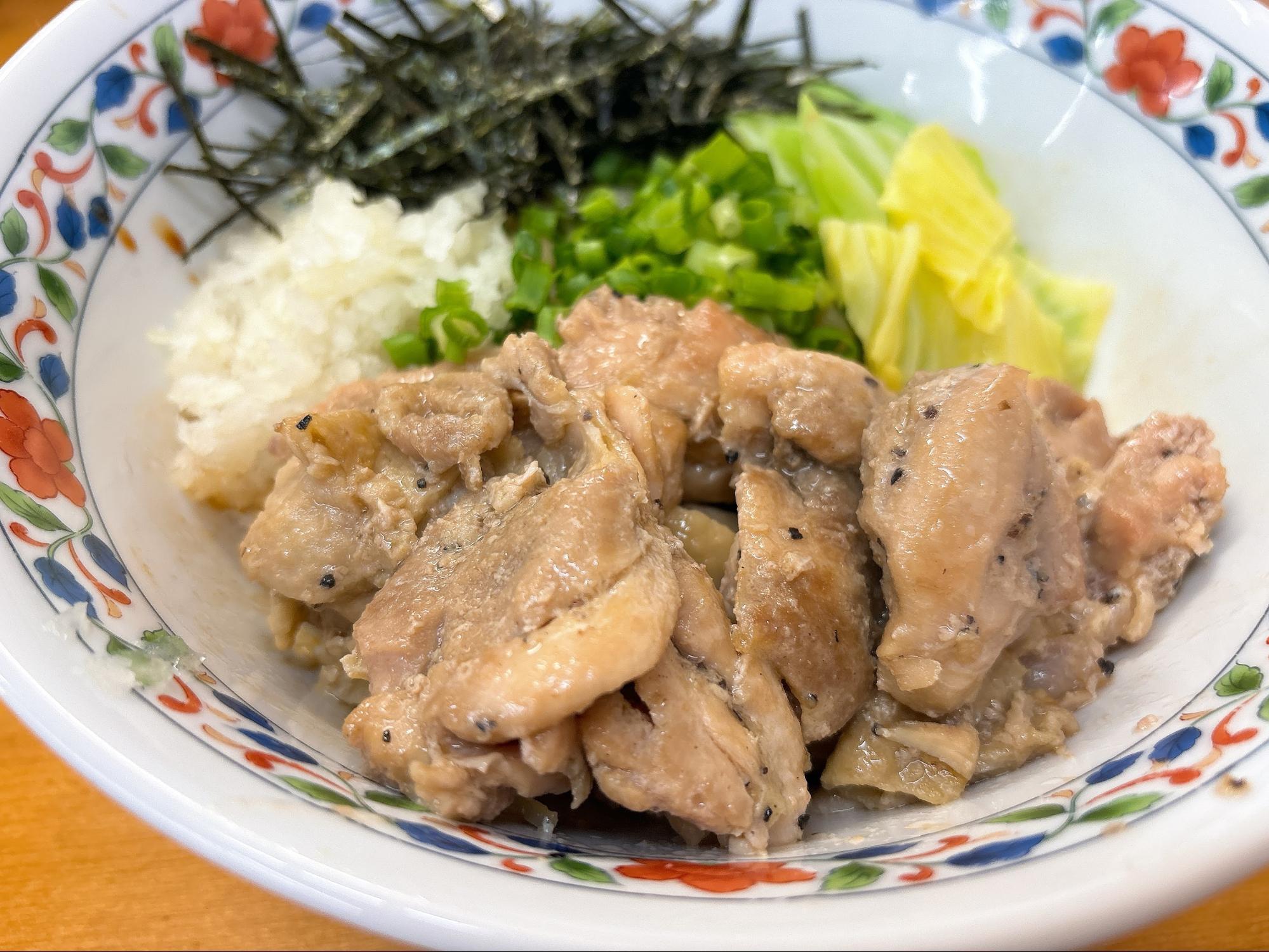 運ばれてきた丼には、チャーシューではなく「かしわ」がのっているところが香川らしさを感じます。