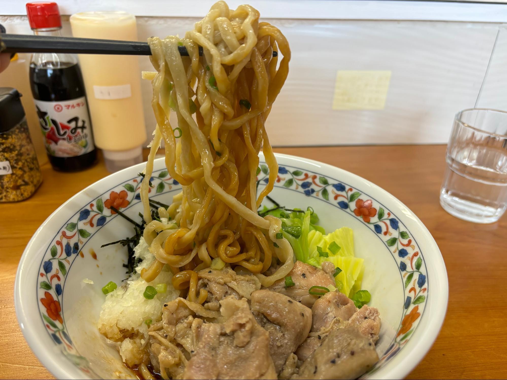 モチモチしていて、底にあるタレとしっかり混ぜて食べると、濃厚なのにしつこくない絶妙な味わいです。