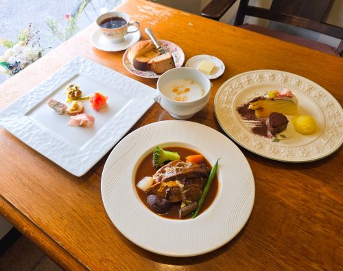 ランチメニューは、「鮮魚のポワレ」「タンシチュー」「牛イチボのロースト」の3種類からメインを選べるスペシャルランチをはじめ、日替わりで内容が変わるランチセットも用意されています。