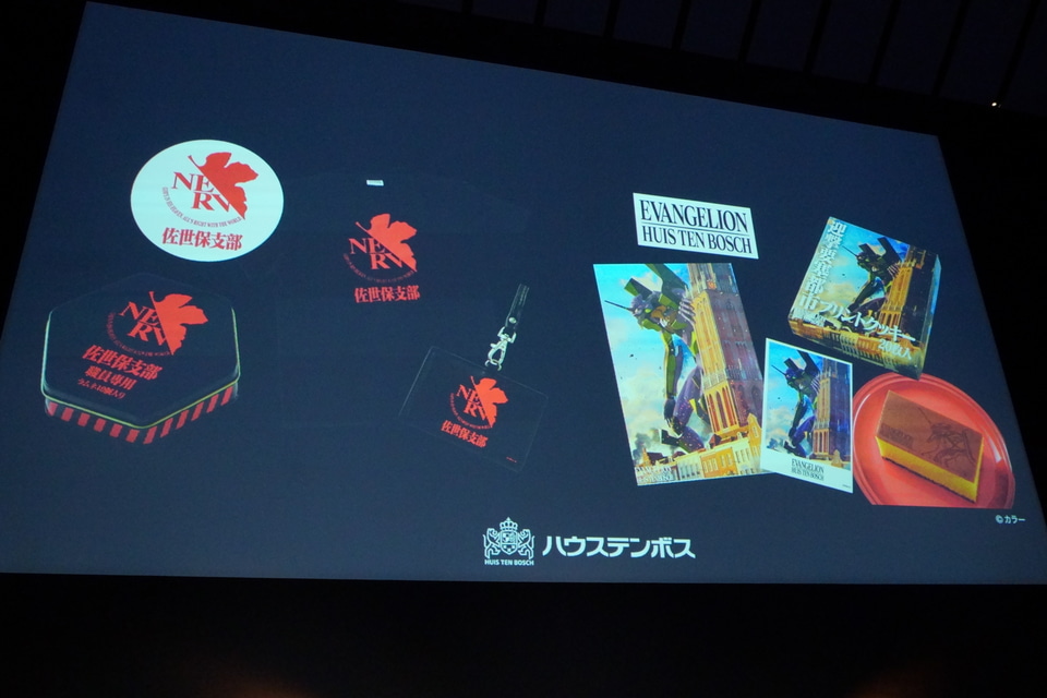 キャラクターをイメージしたコラボメニューやNERV(ネルフ)佐世保支部のモチーフをあしらった限定グッズの詳細も公開し、「迎撃要塞都市 ハウステンボス」としてパーク全体でエヴァの世界観が楽しめることをアピールした。