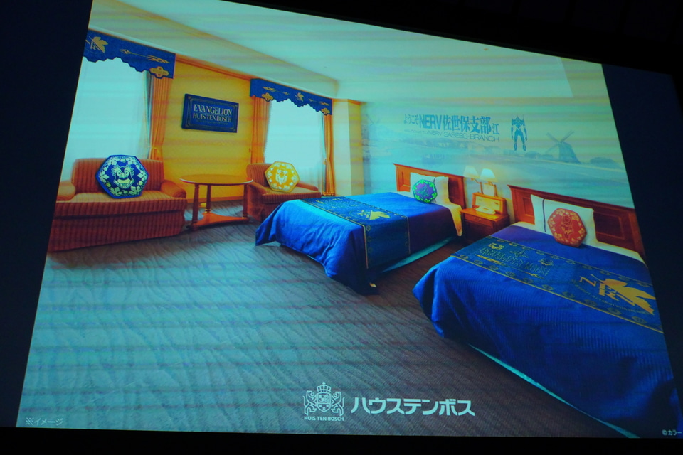 オフィシャルホテル「ホテルデンハーグ」に、ハウステンボスならではのヨーロピアンテイストとエヴァンゲリオンの世界が融合したコンセプトルームが誕生。ハウステンボス限定の描き下ろしのイラストも登場する。
