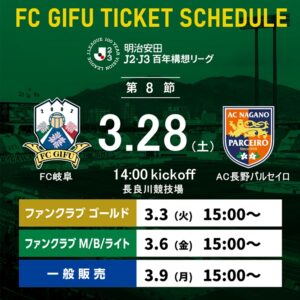 3月28日(土)2026明治安田J2・J3百年構想リーグ第8節 AC長野パルセイロ戦 14:00キックオフ