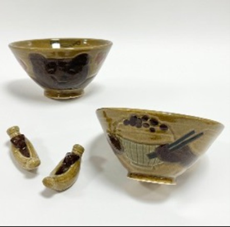 ご飯茶碗と箸置きには茨城県立笠間陶芸大学校を卒業した若手陶芸家の制作品が用いられる。今回の作品と陶芸家の氏名・Instagramアカウントは以下の通り。