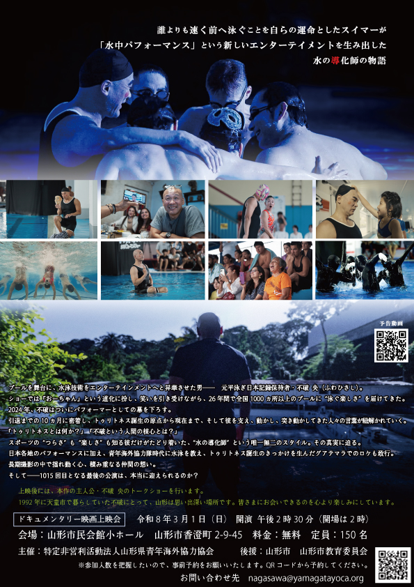 2026年3月1日(日)に、ドキュメンタリー映画「The Swimming Clown ~水の導化師の物語~」上映会in Yamagataが開催されます。