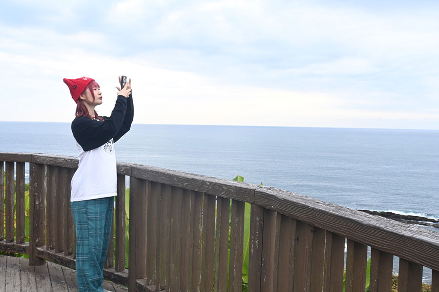 出身が滋賀で海がないので、初めて見る長さの水平線でした。(波状岩の)鬼の洗濯板みたいに地層が出てたり、地球を感じられたことがすごくうれしかったです。