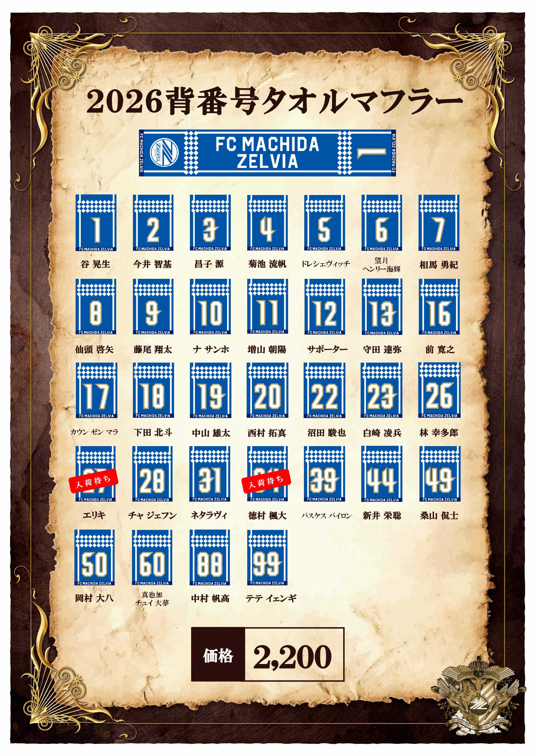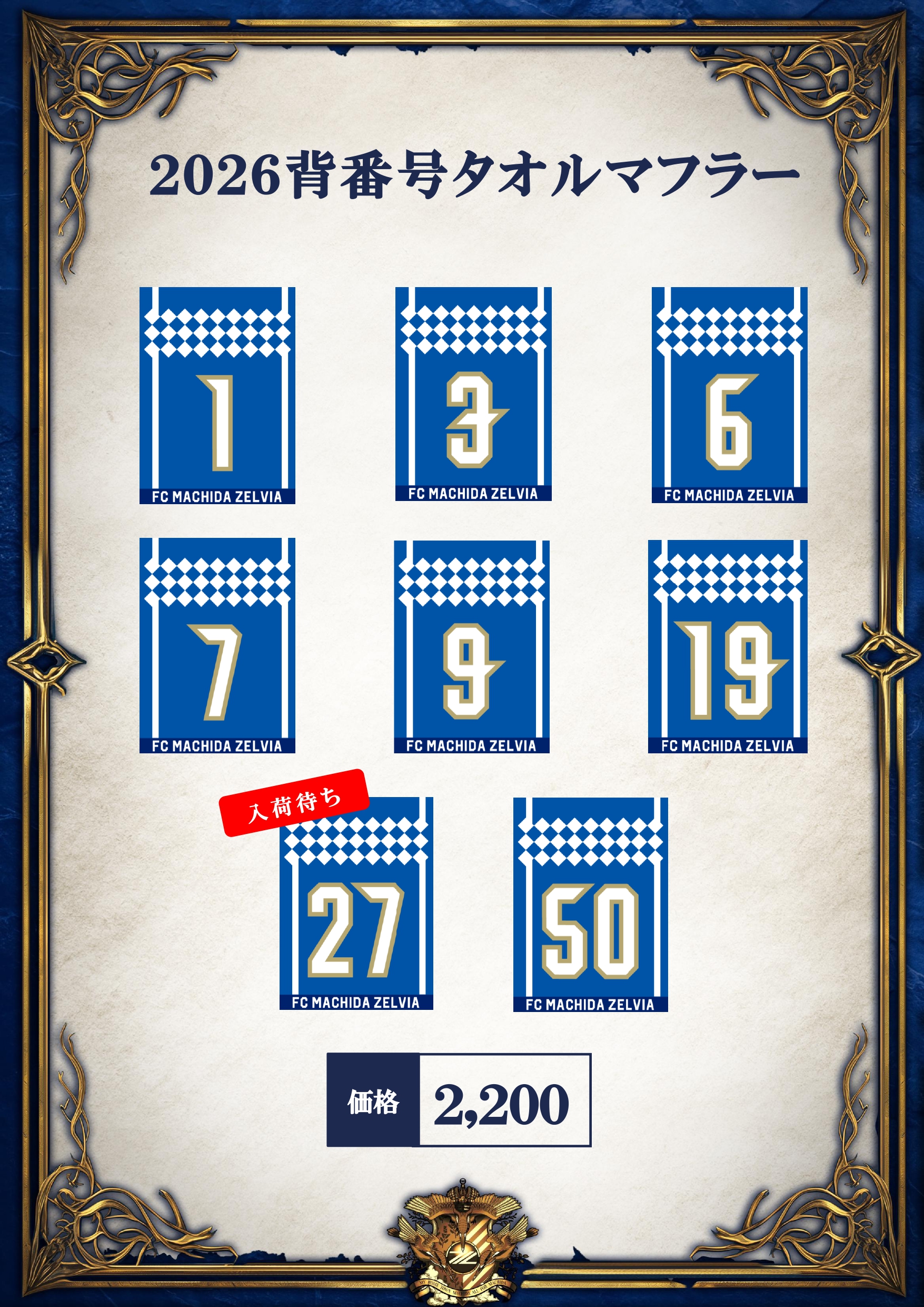 ※「2026背番号タオルマフラー」は、一部選手のみ武器・防具屋プレミアムでも販売しております。詳しくは、ページ下部「武器・防具屋プレミアム」をご確認ください。