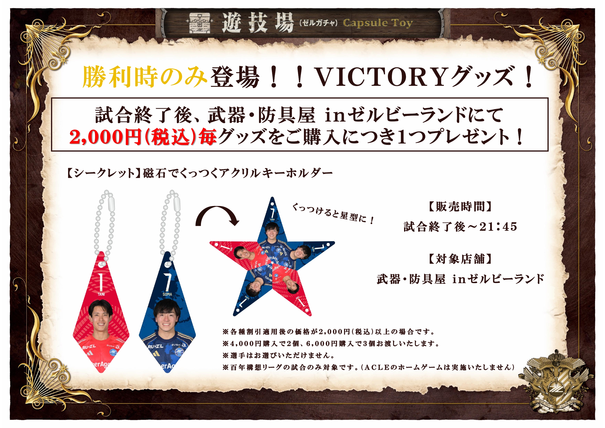 ※VICTORYグッズのプレゼントは、試合終了後のご購入のみ対象です。試合前にご購入されたレシートを持参いただいても、お渡しできません。