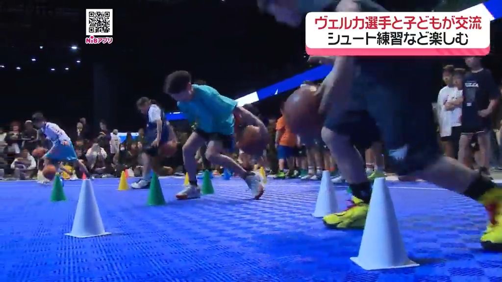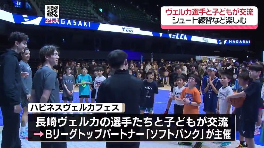 長崎ヴェルカの選手たちと子どもたちとの交流イベントで、Bリーグのトップパートナーを務めるソフトバンクが主催しました。