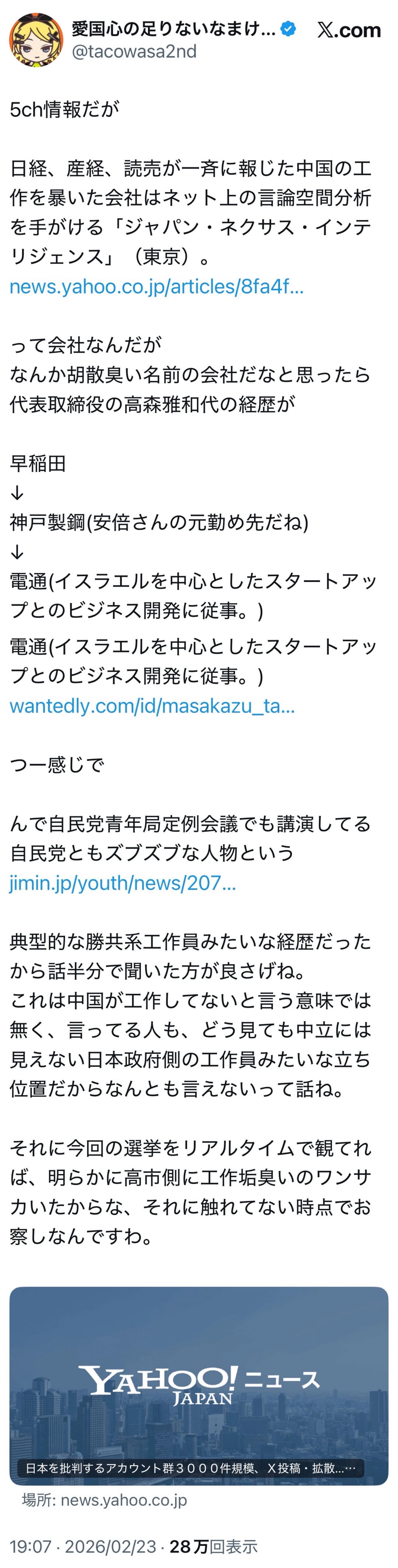 Twitter Pinterest Facebook Tumblr LinkedIn Bluesky Reddit Threads https://x.com/tacowasa2nd/status/2025875183211282768 https://www.wantedly.com/id/masakazu\_takamori\_a https://www.jimin.jp/youth/news/207109.html Japan Japan News News News Japan Newsokuexp