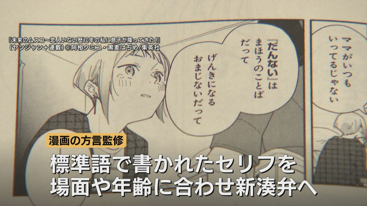 漫画の方言監修の仕事は、まず絵コンテから始まります。標準語で書かれたセリフを、場面や登場人物の年齢に合わせ「新湊弁」に変換。