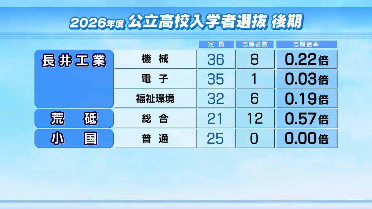 長井は普通科探究コースで1.21倍。一般コースは定員割れです。