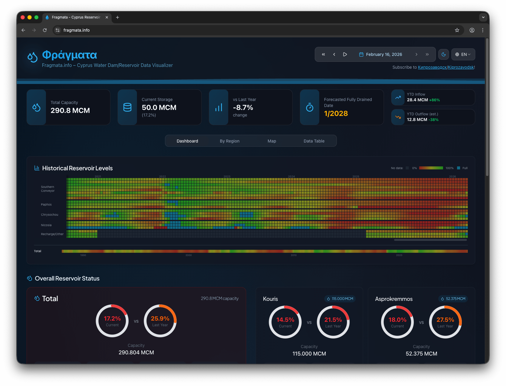 キプロスでは最近、過去4年間にわたる極度の干ばつと水資源の減少が大きな話題となっている。また、選挙が近づいていることもあり、キプロス人一人一人にとって水が重要であることもあり、非常に政治的でもあります。物語は飛び交い、議題は押し進められます。