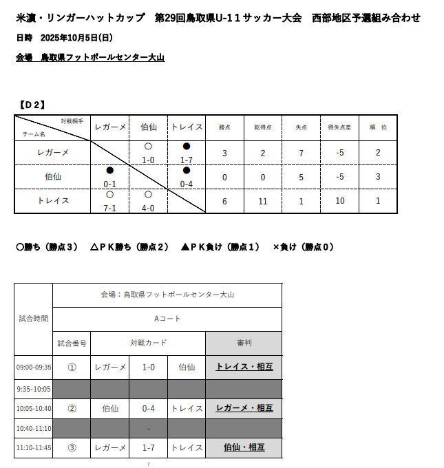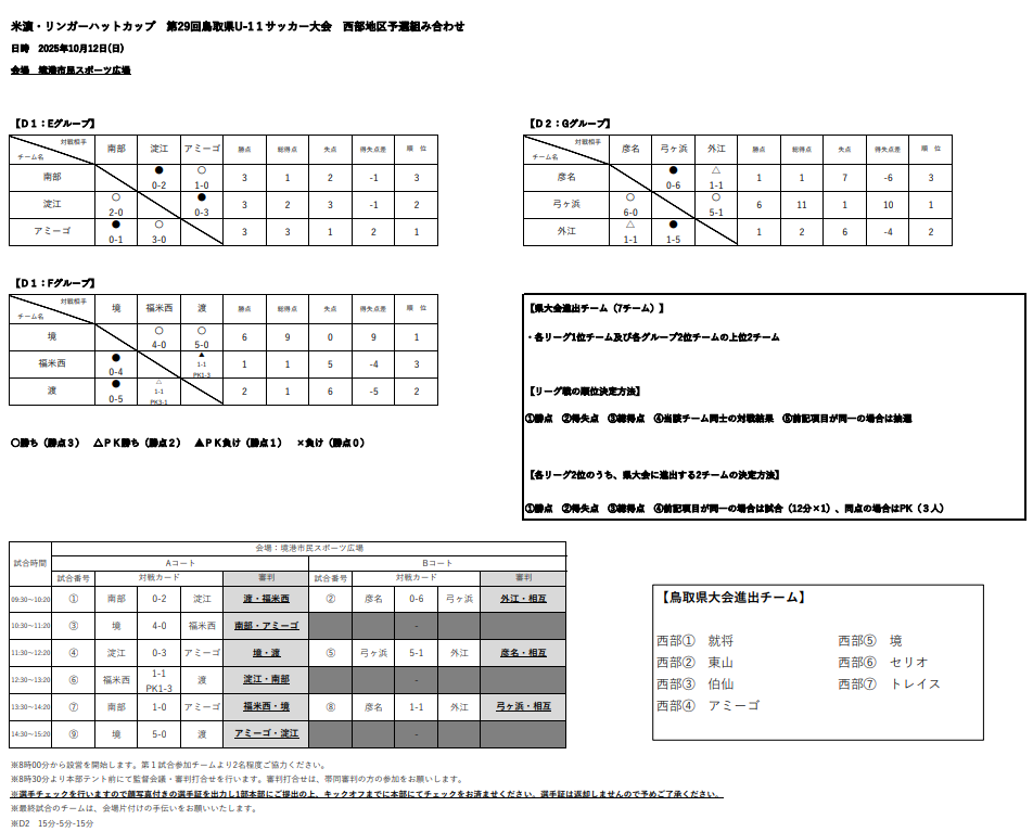 上位2チームは、2026年4月4日(土)から5日(日)に山口県で開催される「JA全農杯チビリンピック2026小学生8人制サッカーin中国兼第24回中国ユースサッカーU-12ジョイフル大会」の鳥取県代表チームとして推薦する。