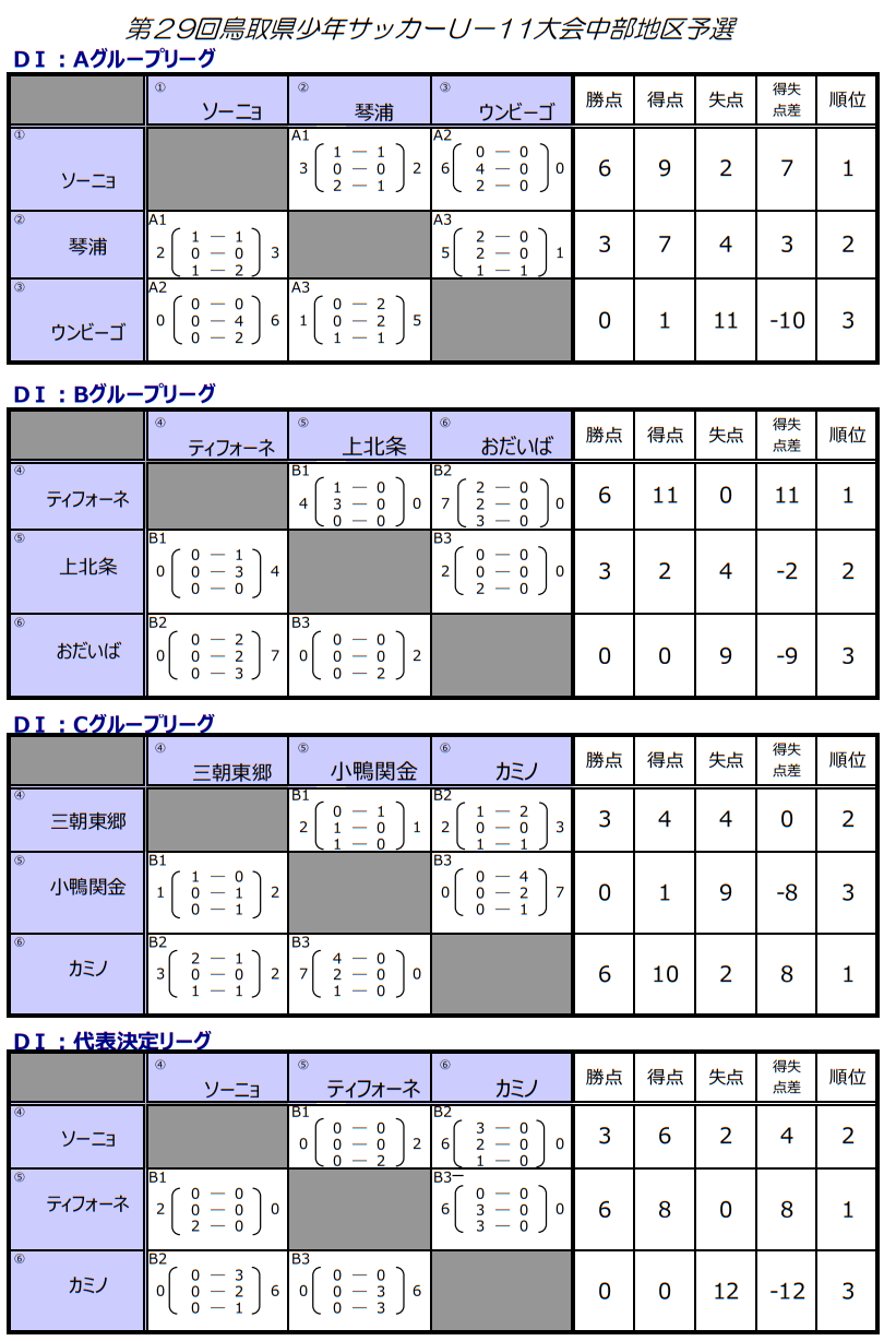 【内訳:東部地区代表(7)、中部地区代表(2)、西部地区代表(7)】 ※鳥取県 U-12 サッカー大会