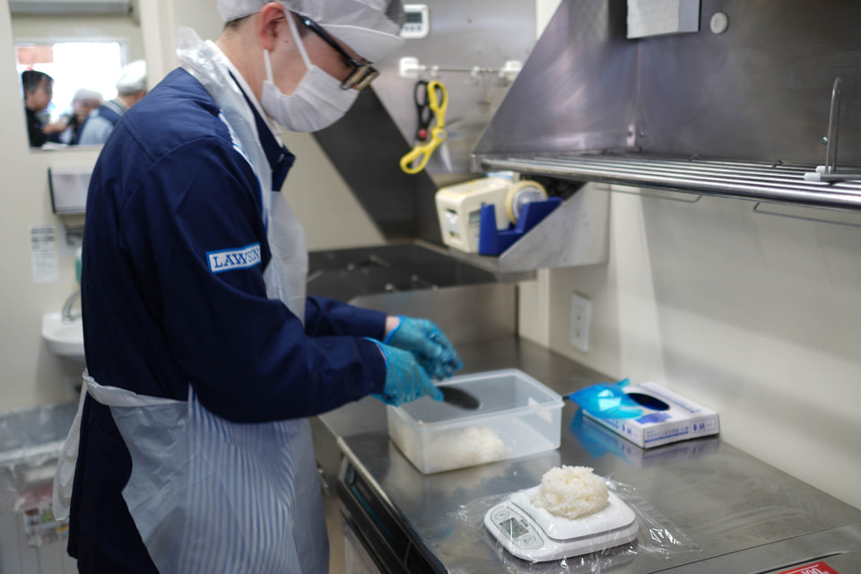 炊飯に使う白米は、特別に備蓄するものではなく、通常時提供しているのと同じ在庫を使用する。なお、こちらは見た目はおにぎりだが、「店炊きごはん」という扱いで、食塩や海苔は入っていない。
