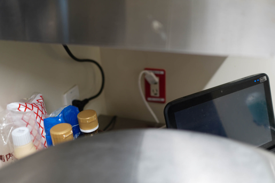 ただし、厨房にある業務用電子レンジやフライヤー、業務用炊飯器は、蓄電池で稼働するには消費電力が大きすぎるため、自立電源での運用は想定されていないという。そこで、電力系統が途絶えた場合などは、ラップに包んだだけの簡易包装の白米を販売するというオペレーションも準備されている。厨房には自立電源用のコンセントも用意されており、そこに一般家庭と同じ100V電源を使う炊飯器を繋いで炊飯することになる。