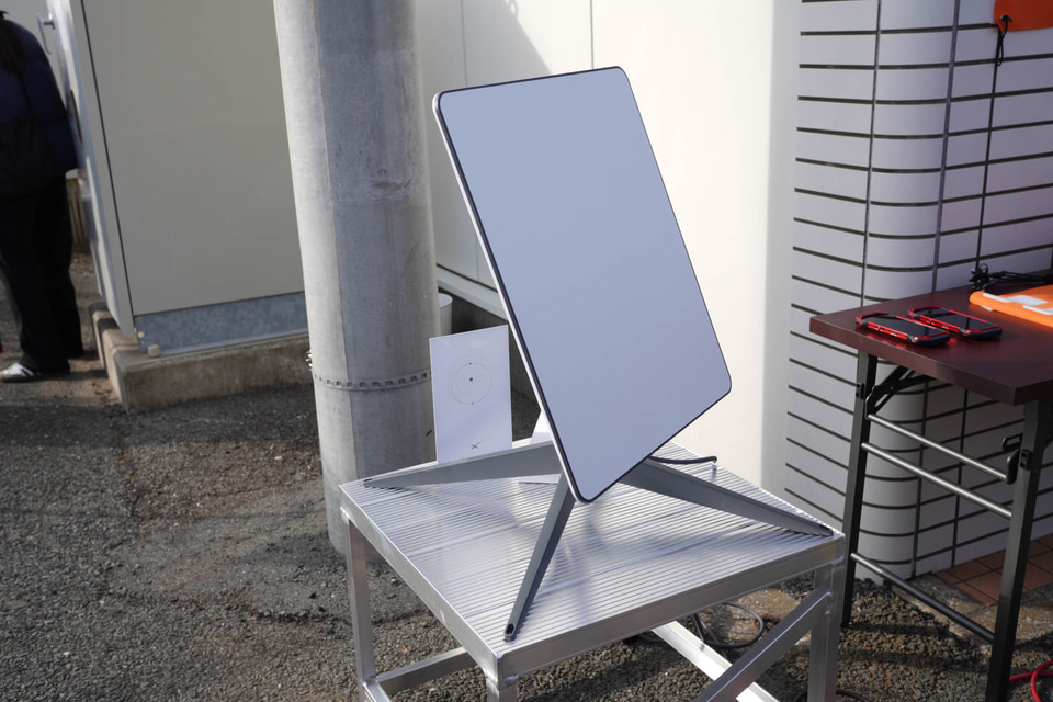 Starlink端末。個人向けのモデルに比べると一回り大きい業務向け端末が配備されている