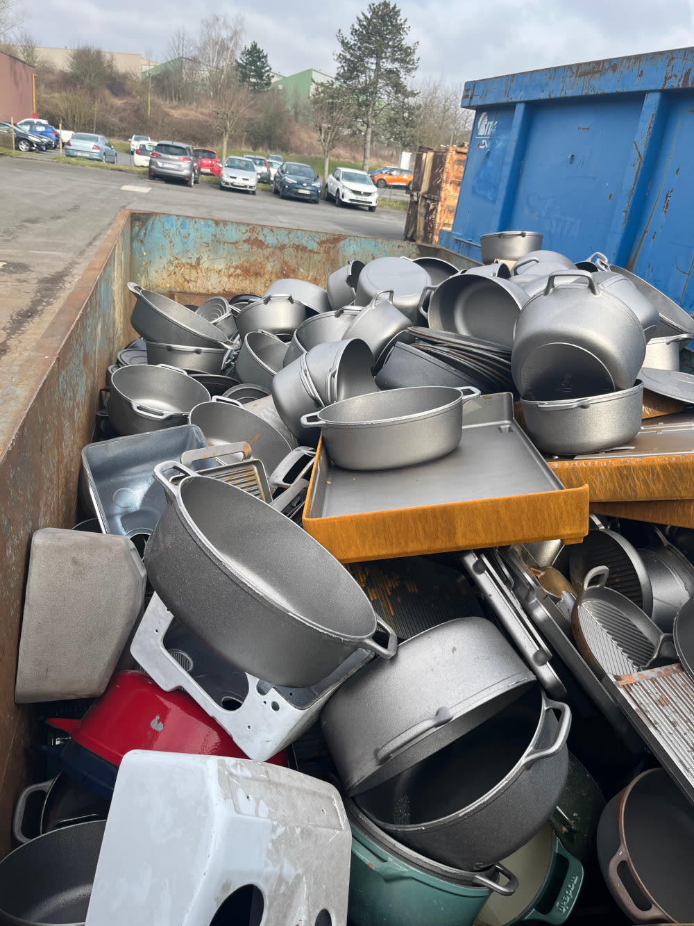 シャスールは、100年前から、長く使い続けられるものを提供するシステムを作っています。上記に書いたように、職人の手によって作られた鍋はその基準が厳しく、不合格品となるものもあります。しかしすべて再溶解・再利用を実施しているのです。また、それぞれの家にあるシャスールの鍋のメンテナンスもきちんとフランス国内で行っています。つまり、「ごみ」にならず、必ず使用できるか資源として再利用される仕組みが完成されているのです。