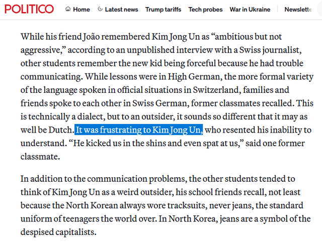 ソース: https://www.politico.eu/article/north-korean-leader-kim-jong-uns-undercover-adolescent-years-in-switzerland/ Switzerland