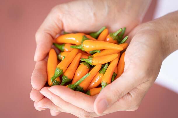 オレンジ色のかわいい見た目に反して激辛で、その辛味レベルはタカノツメの2倍。ですが、ただ辛いだけではなく糖度が高いので、辛さの中に甘みがあり、独特の芳醇な香りも感じられるところが、他にはない特長です。