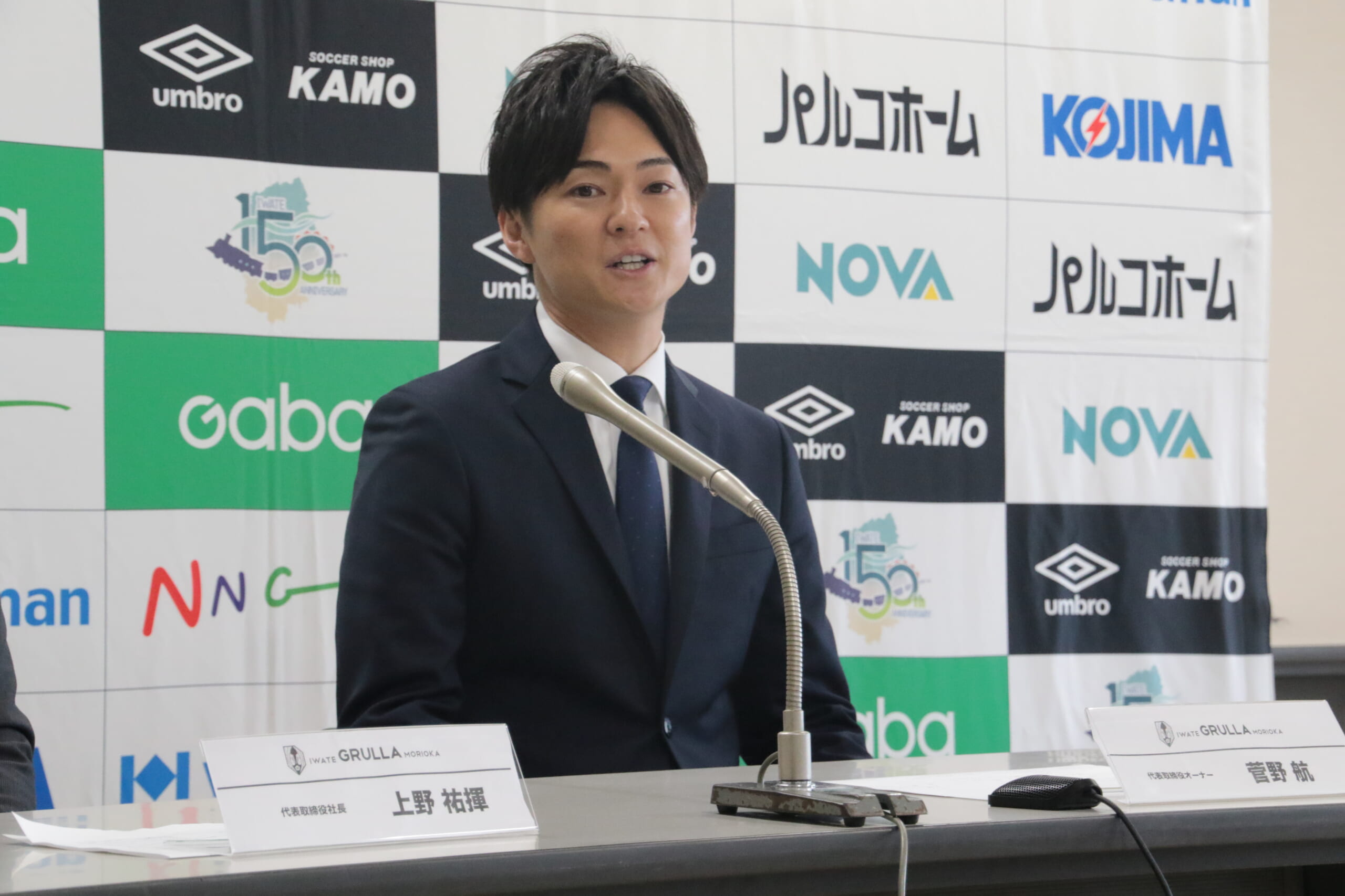 この度、株式会社いわてアスリートクラブ、いわてグルージャ盛岡のオーナーに就任させていただくことになりました、菅野航と申します。