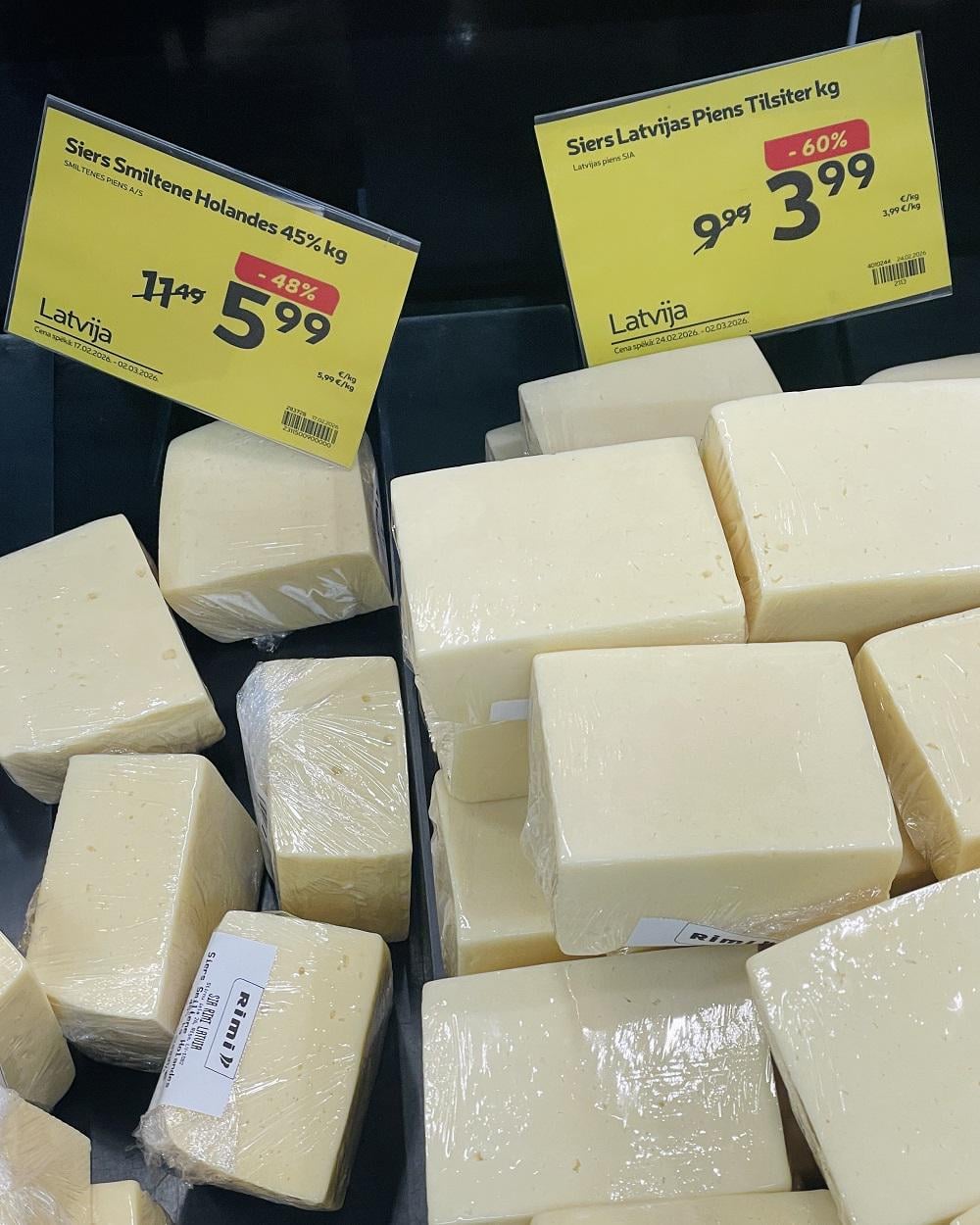 Twitter Pinterest Facebook Tumblr LinkedIn Bluesky Reddit Threads 一昨日 私は置きました Tilzīte チーズ 4.59 ユーロ、今日は 3.99 ユーロ、その隣のオランデーズ チーズは 5.99 ユーロです。すべてがディレクトリにありません。 🙏 Latvia