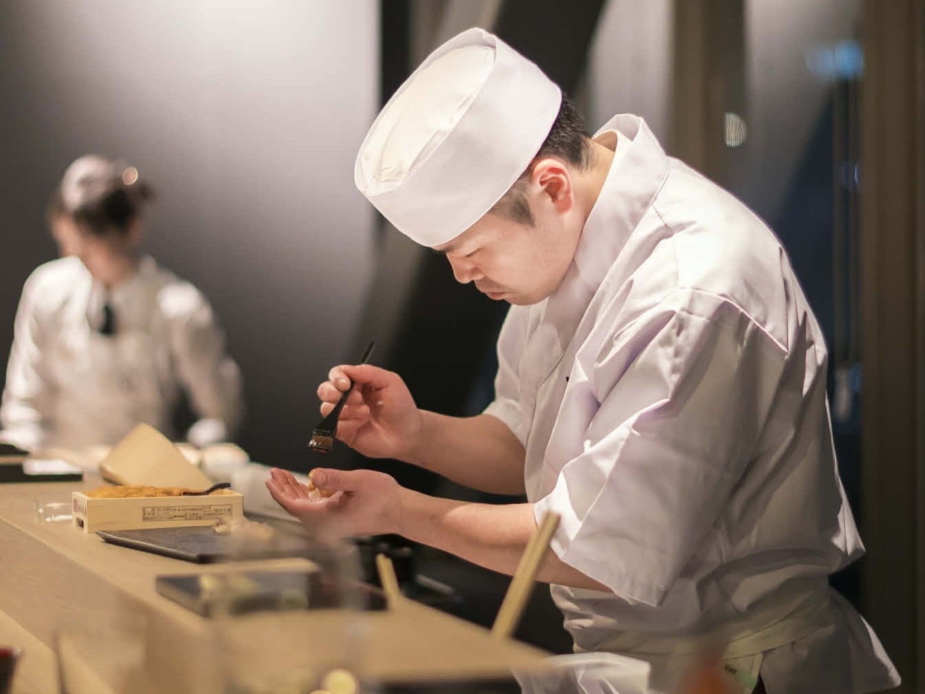 金沢の“じもの”を中心とした食材と、日本の食文化を一度にご体験いただける新しいスタイルのダイニングで、寿司職人が旬の鮮魚を目の前で一貫ずつ握り、世界的な知名度を誇る和牛を、伝統的な調理法であるしゃぶしゃぶとして提供します。さらに、金沢の伝統野菜「加賀野菜」を用いたお料理や、天ぷらや茶碗蒸しなど和食の定番を織り込み、今やグローバルな食シーンに定着した世界共通語である『OMAKASE』コースとして体験していただけます。