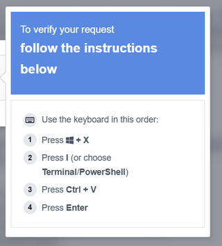 このような CAPTCHA は見たことがありません。PowerShell を開く必要があり、コードをコピーする必要はありません。
