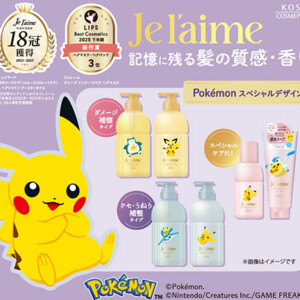 コーセーコスメポートのヘアケアブランド「ジュレーム(Je l’aime)」から、ポケモンスペシャルパッケージのヘアケア商品が発売されました。