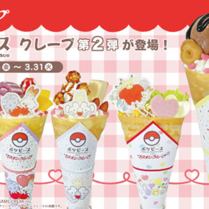 2026年3月6日(金)~31日(火)までの間、マリオンクレープ対象店舗にて「ポケピースクレープ」の第2弾が販売されます。絵柄は全部で5種類です。