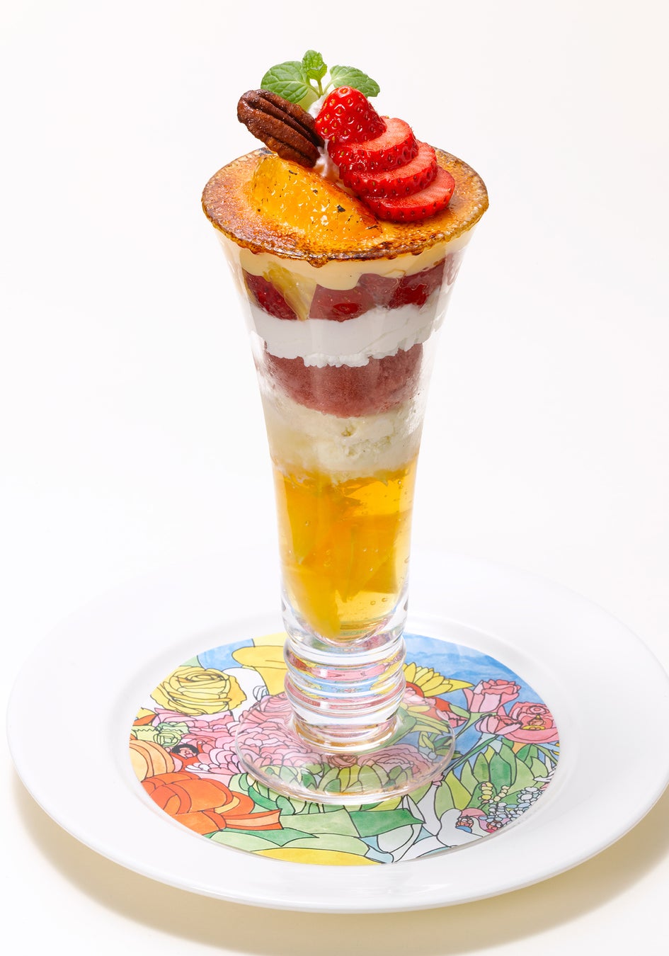 人気のブリュレパフェが、2ndシーズンでは春らしい装いで登場。カリッと香ばしくキャラメリゼした濃厚なクレームブリュレに旬の甘ずっぱい苺と不知火、ピーカンナッツ、塩キャラメルアイス、ホイップクリーム、ストロベリーソルベ、バニラアイスクリームを重ねました。最後の層を不知火とミント&レモングラス風味ゼリーにすることで、春らしい甘ずっぱさと爽やかさの余韻が残る一品です。
