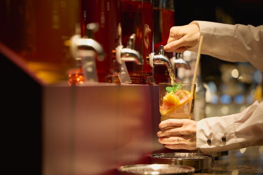 4種のティー、季節のフルーツ、シロップを自由に組み合わせ、「オリジナル・ティーモクテル」を作れる体験型ドリンクバーです。