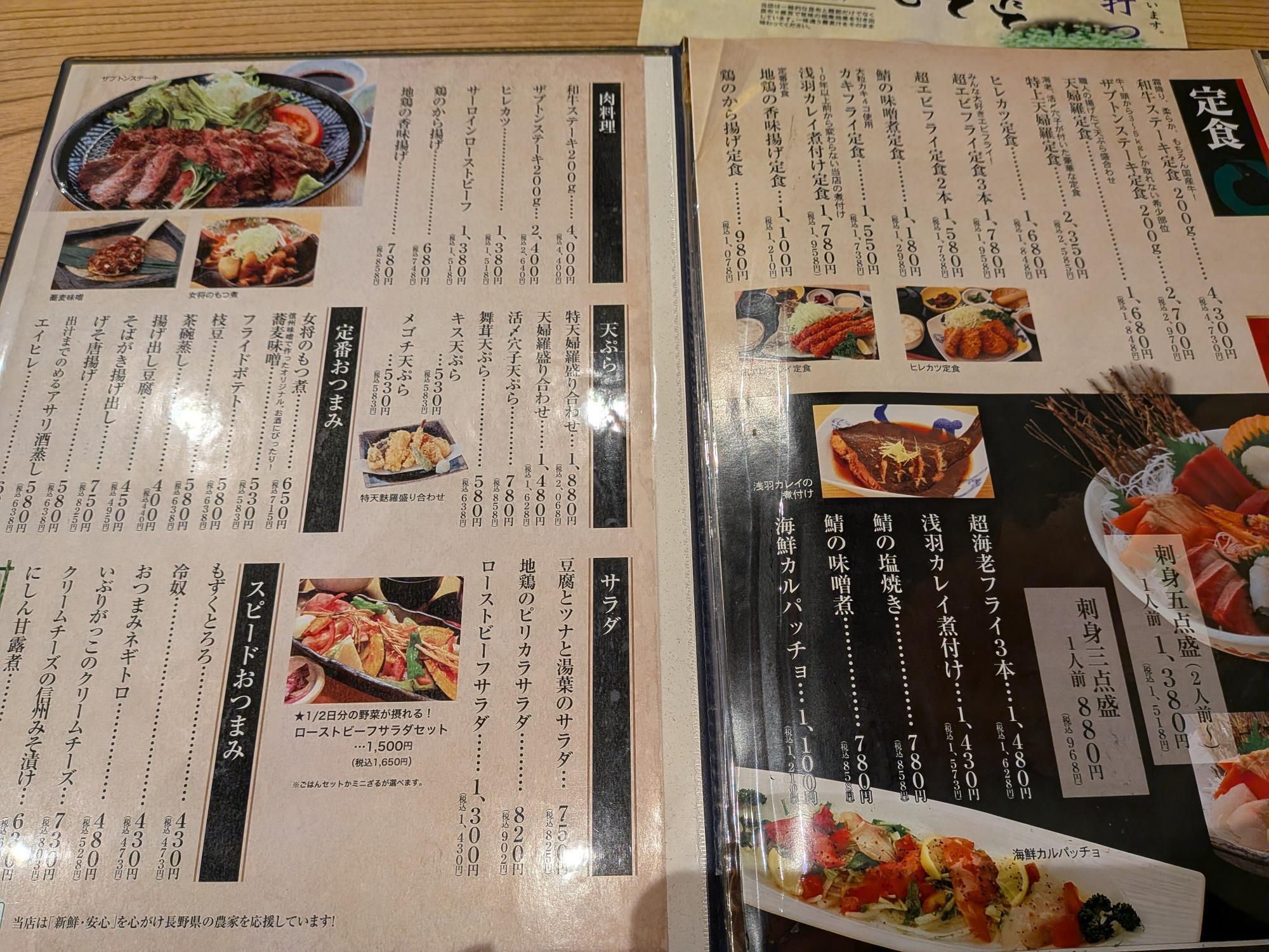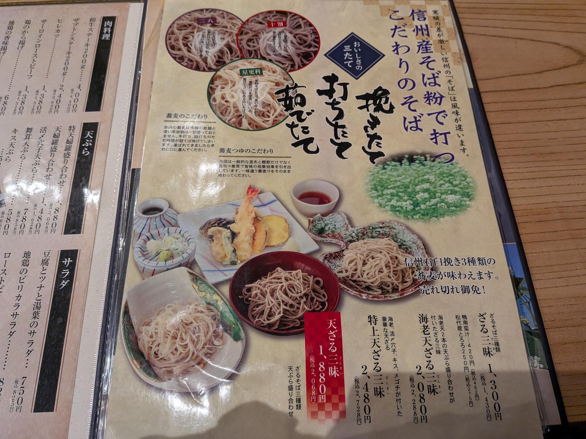 店の顔である信州そばに加え、様々な和食メニューが豊富に用意されています。