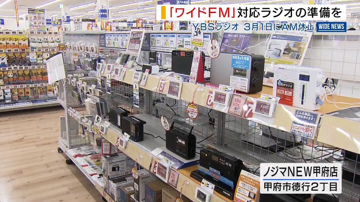 山梨県甲府市の家電量販店で、ラジオのコーナーをのぞいてみると、商品には「ワイドFM対応」の表記が…