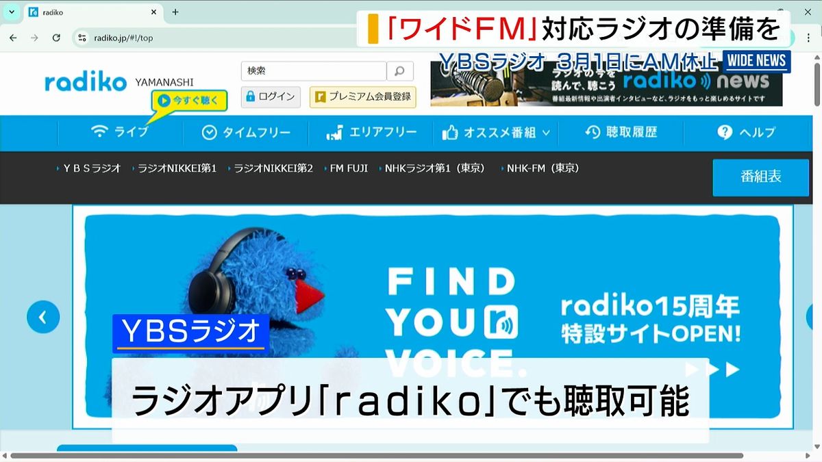 3月1日の正午以降は、YBSラジオが聞けなくなるため、早めの切り替えをお勧めします。