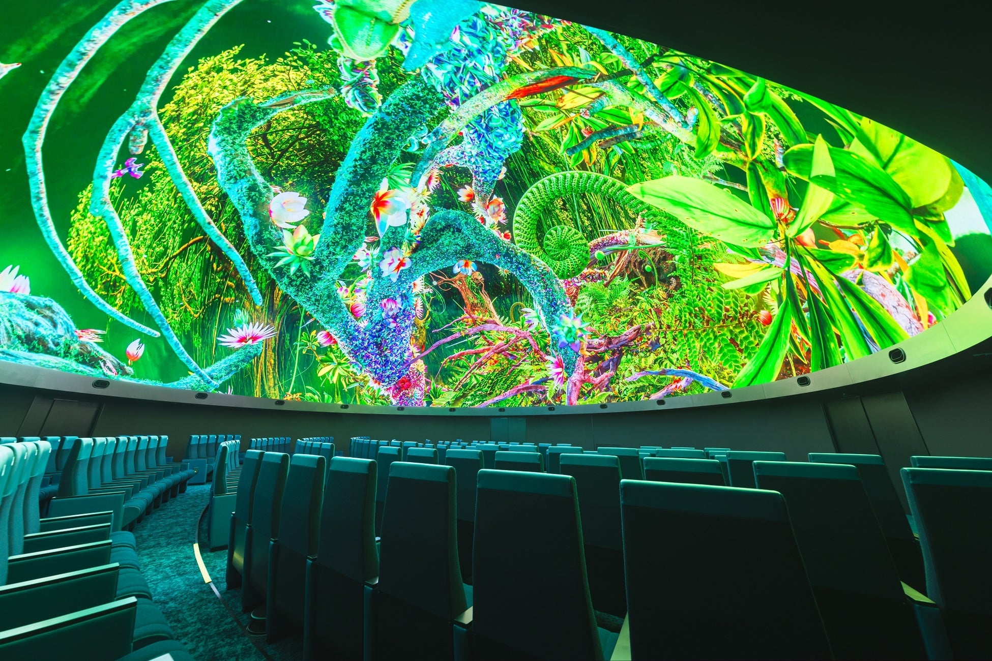 ※「全天周(ぜんてんしゅう)映像」とは、プラネタリウムなどで使用されるドーム状のスクリーンに、視野全体を覆うように映し出される巨大な映像のことです。映像の世界に没入するような臨場感あふれる体験を提供します