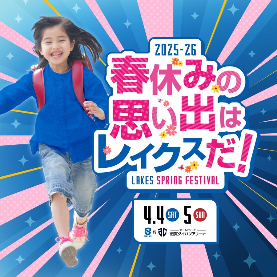 4月4日(土)5日(日)に滋賀ダイハツアリーナで行われるホームゲーム「りそなグループ B.LEAGUE 2025-26シーズン B1リーグ戦第29節 滋賀レイクス vs アルティーリ千葉」にて、オリジナル缶バッジのプレゼントなど、小中学生を対象としたイベントが盛りだくさんの「レイクススプリングフェスティバル」を開催いたします。