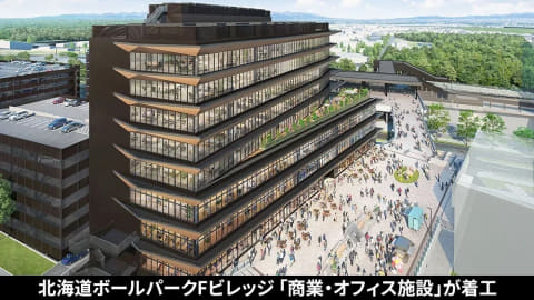 北海道日本ハムファイターズのホーム球場「ES CON FIELD HOKKAIDO(エスコンフィールド北海道)」がある北海道ボールパークFビレッジに、新たに商業・オフィス施設「(仮称)Fビレッジ複合施設」の開発が決定し、着工した。2028年春の開業を予定している。事業主はエスコンスポーツ&エンターテイメント。