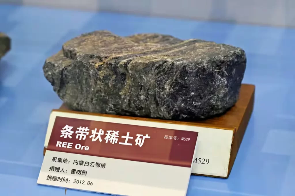 レアアースを含んだ鉱石。中国の対日威圧が軍民両用品目の輸出規制にも拡大した(共同)