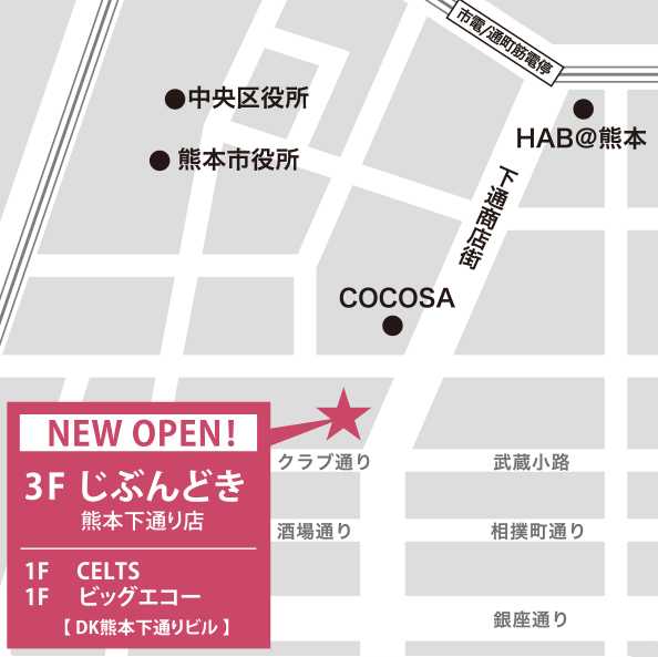 所在地:熊本県熊本市中央区下通1-4-15 3F