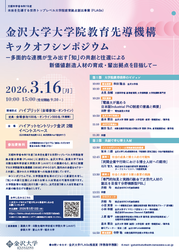 ■金沢大学大学院教育先導機構キックオフシンポジウム