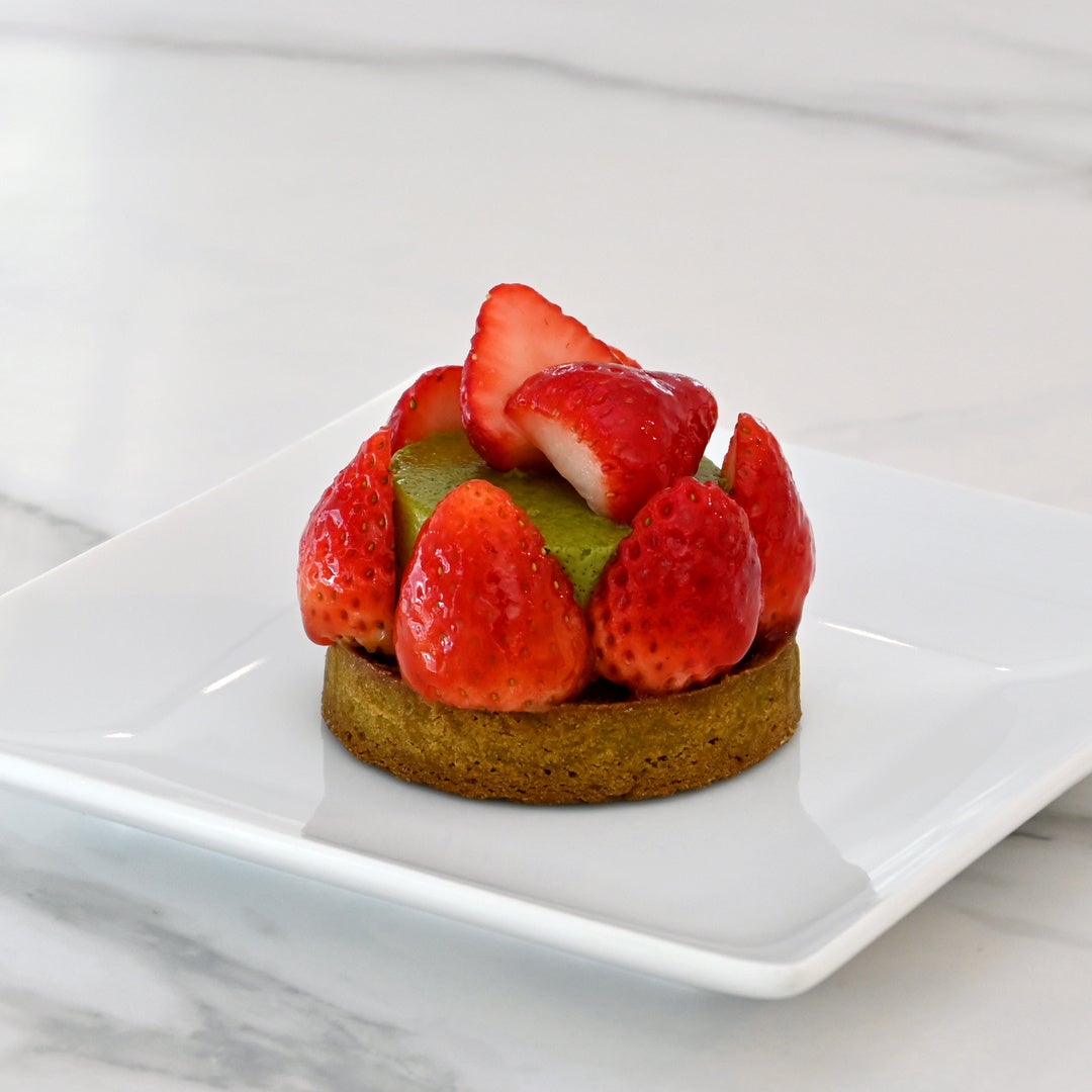 抹茶の配合を細やかに調整したブリュレとタルト生地、みずみずしく甘みの際立つ「とちあいか」が調和する仕立てです。
