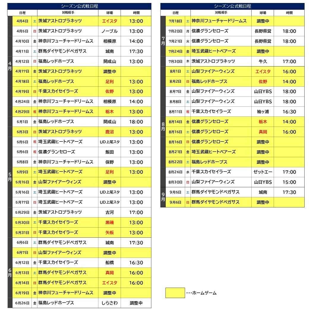 公式戦日程一覧(2月27日更新)