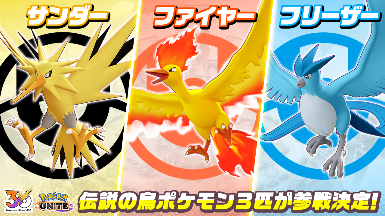 『ポケモンユナイト』にサンダーが参戦! ファイヤー、フリーザーも、順次登場します。