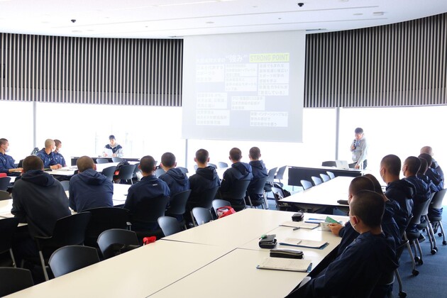 さらに、全学生と個別面談を行うなど群を抜いて親身なキャリアサポートもあり、教員や消防士などの公務員に多数が現役合格し、ミズノやキーエンスといった大手企業をはじめ多彩な業種への就職につながっていると説明を受けた。