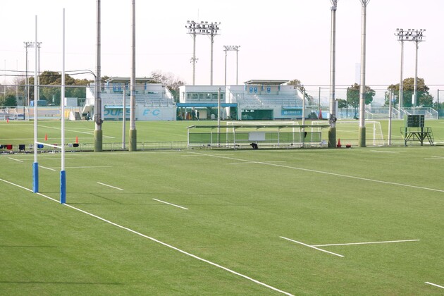 多目的グラウンドに向かう坂の途中から、ラグビー場とサッカー場を一望